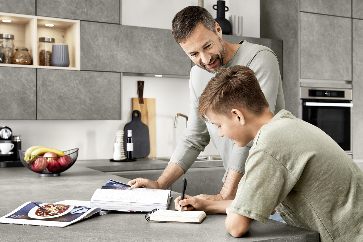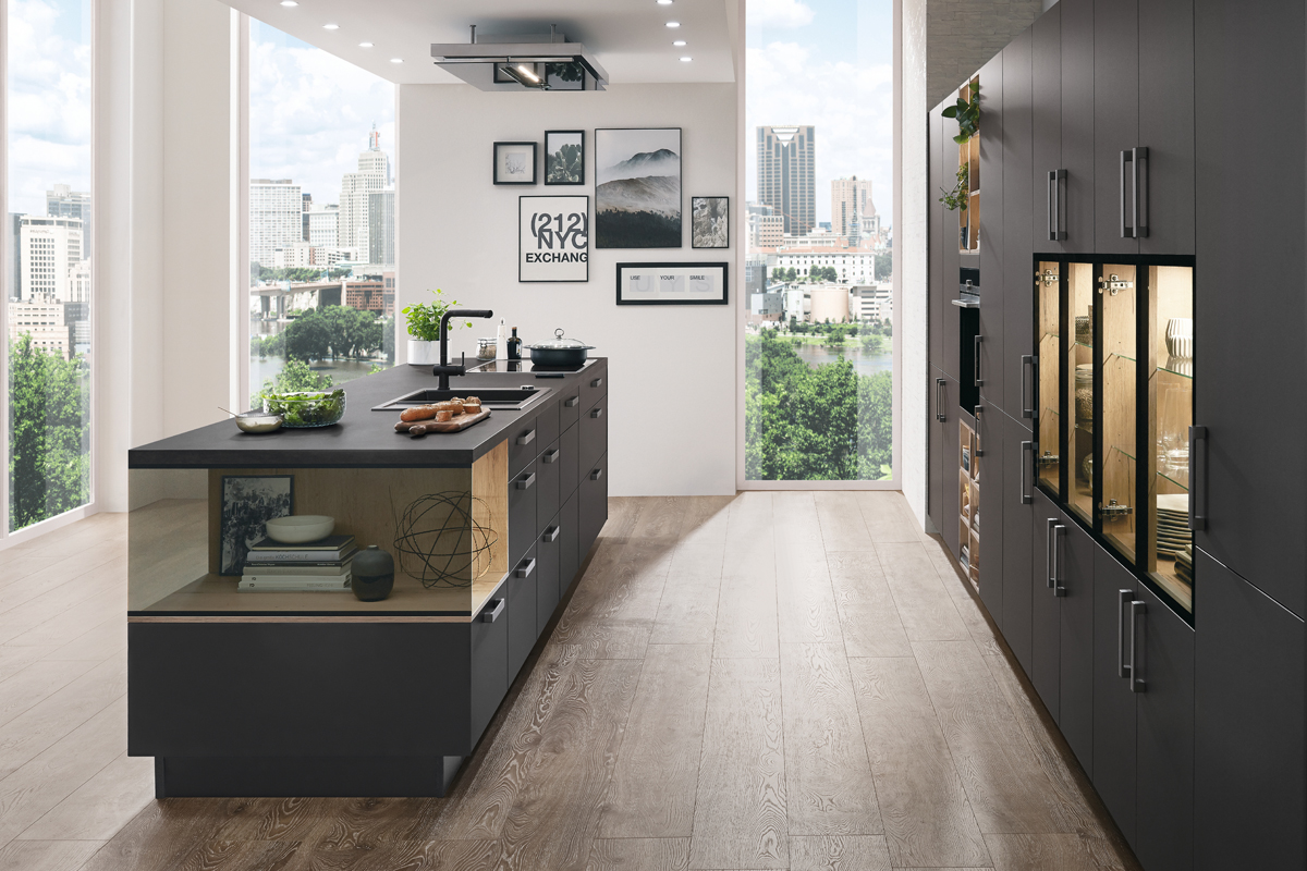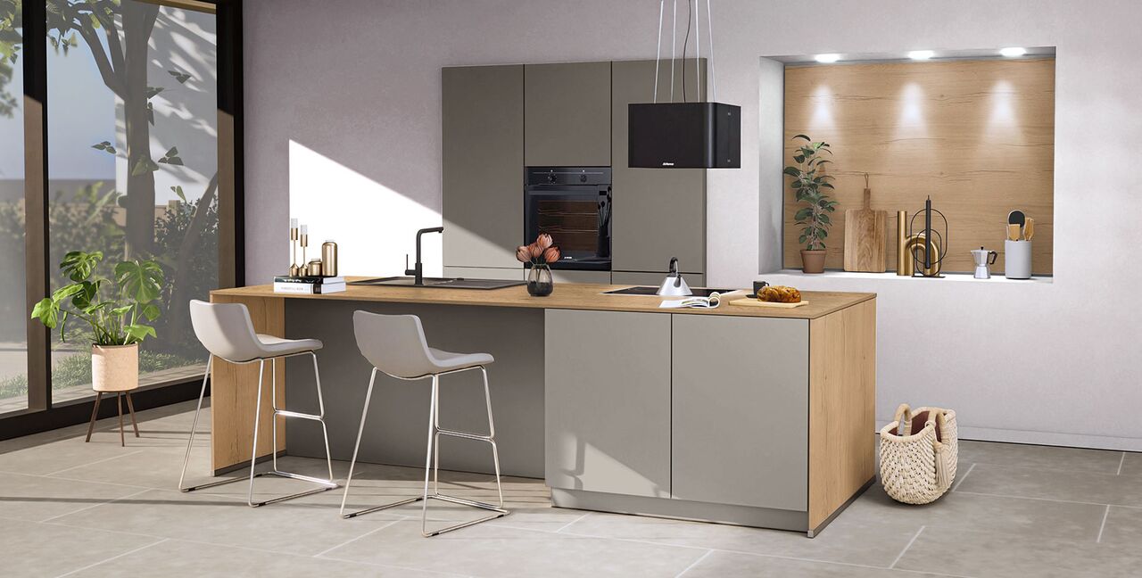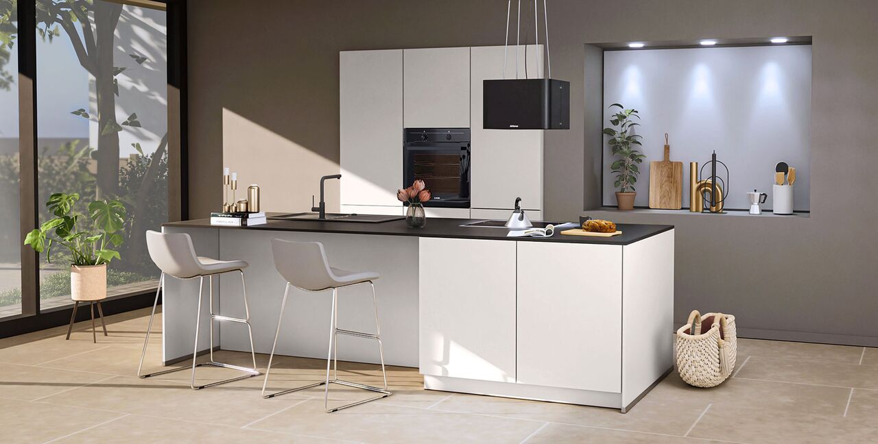 Inklusive Einbaubackofen schwarz Junker JF1300061 Energieeffizienzklasse A, Glaskeramik Kochfeld Junker JR36DT54, Inselesse Edelstahl Airforce F164BK Energieeffizienzklasse A, Kühlschrank Laurus LKG88E Energieeffizienzklasse E, Einbau-Designspüle Elleci Logik 300, Esstheke, XL-Schränken.