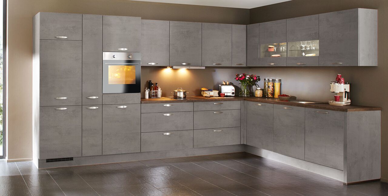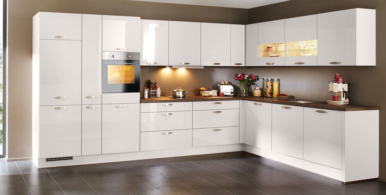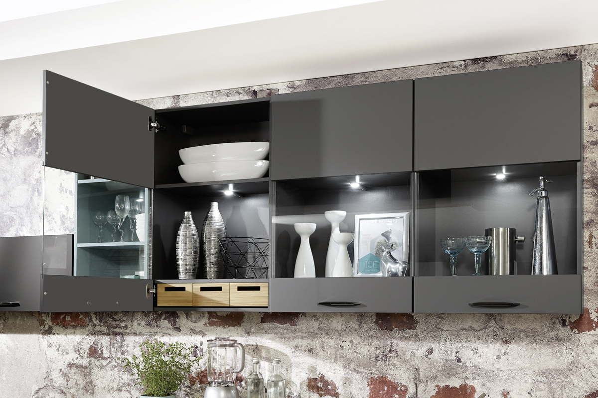 Inklusive Einbaubackofen Edelstahl Laurus LEB5 Energieeffizienzklasse A, Glaskeramik Kochfeld Laurus LCA600, Flachschirmhaube Elica ELITE 14 60-D Energieeffizienzklasse D, Kühlschrank Laurus LKG88E Energieeffizienzklasse E, Einbauspüle Edelstahl Rodi Okio Line 85 Deep, Unterschränken mit Frontauszügen, Wandschränken mit Segmentglastür, Geschirrschrank.