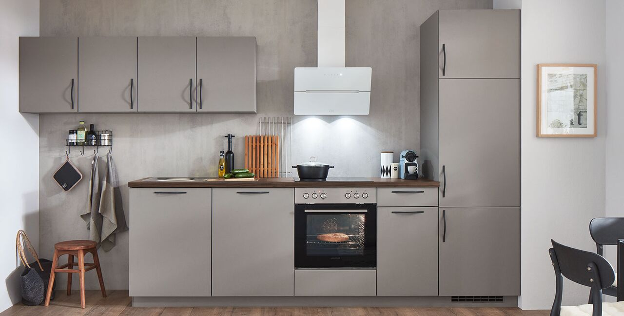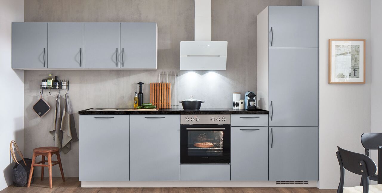 Inklusive Einbauherd Edelstahl Laurus LEH5 Energieeffizienzklasse A, Glaskeramik Kochfeld Laurus LCF600, Designesse Edelstahl / Glas Elica WISE60WH Energieeffizienzklasse B, Kühlschrank Laurus LKG88E Energieeffizienzklasse E, Einbauspüle Edelstahl Rodi Okio Line 85 Deep, XL-Schränken.