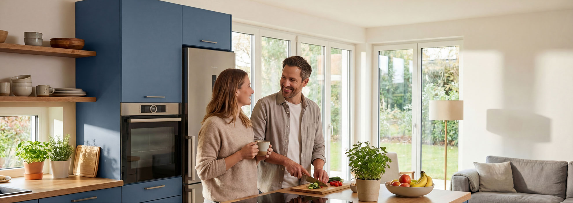 Wir setzen auf langlebige Küchen und bewährte Marken-Geräte, die Leistung und Design verbinden. Durch unsere effizienten Prozesse und starke Partner profitieren Sie von hoher Qualität zu einem fair kalkulierten Preis. Ohne unnötige Extras, ohne versteckte Kosten – dafür mit echter Transparenz.